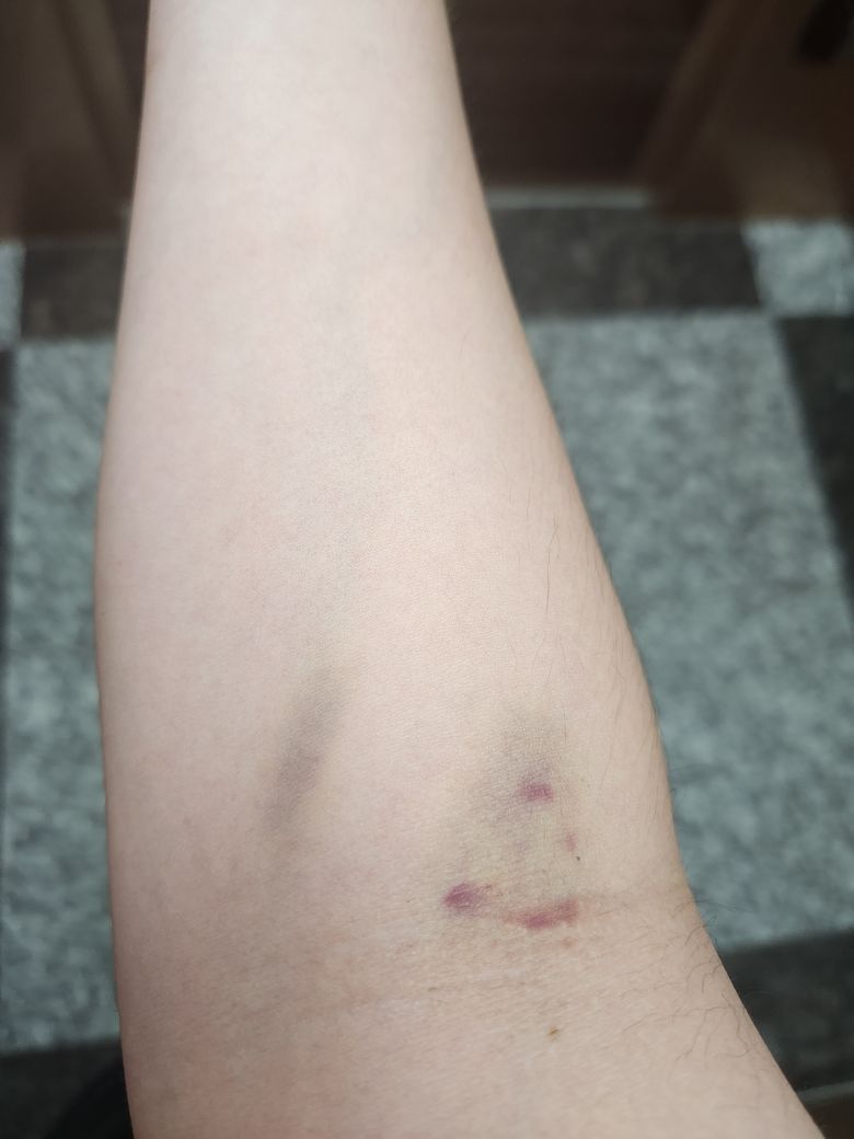 제가 건강검진 채혈후 지혈을 똑바로 안해서 그런가 주사 부위에 피멍이 났습니다
