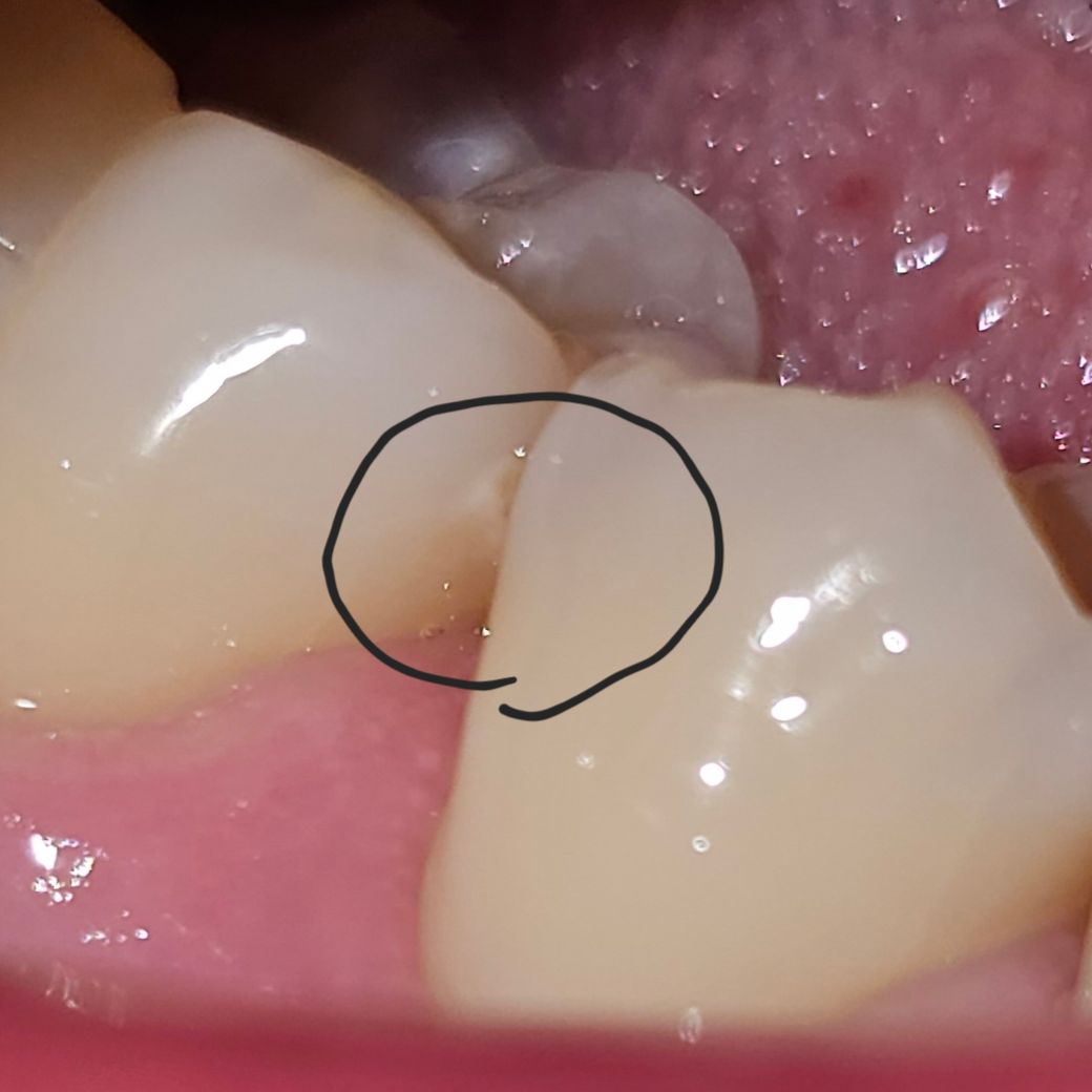 며칠 전 충치 치료 후 의사선생님이 이제 충치 없다고 하셨습니다. 그런데 집에서 스스로 확인 중 발견했는데 이거 인접면 충치 아닌가요? 선생님이 놓칠 수도 있나요?
