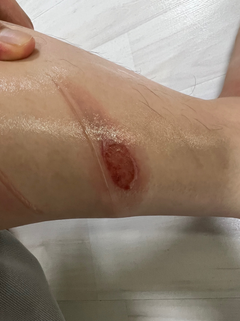 표피가 벗겨진 상황이고 2도 얕은이나 2도 깊은 화상정도로 보입니다.
