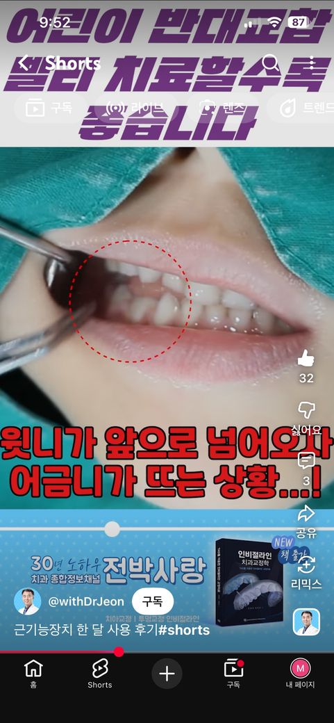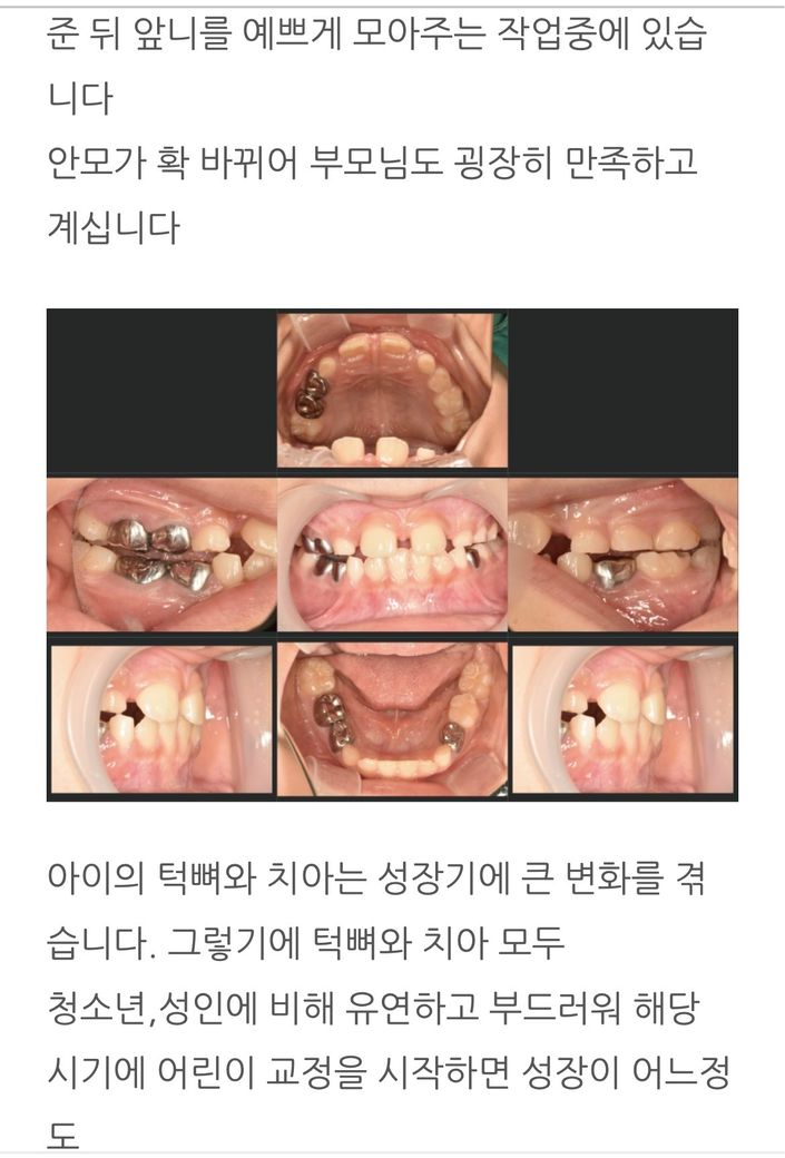 이외에도 사례를 찾아보면 어린이 앞니 반대교합을 교정하고 어금니가 뜨는 경우가 많으것 같습니다.