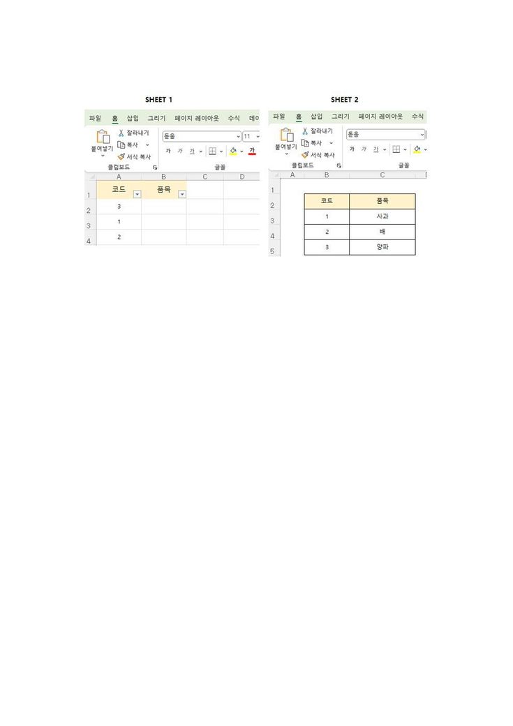 엑셀에서 코드를 입력하면 자동으로 품목이 나오는 가장 쉬운 방법은 VLOOKUP 함수를 사용하는 것 같습니다. SHEET 1의 품목 셀에 다음과 같이 입력하시면 돼요: =VLOOKUP(A2, 'SHEET 2'!A:B, 2, FALSE) 이렇게 하면 코드 번호를 넣었을 때 SHEET 2에서 맞는 품목 이름을 자동으로 가져옵니다. 수식을 품목 셀마다 아래로 복사해주면 되고, 함수 쓰는 게 처음이라면 천천히 따라 해보면 크게 어렵지 않을 거예요. 익숙해지면 다른 함수들 쓰는 데도 도움이 되니까 한 번 꼭 시도해보시면 좋겠어요.