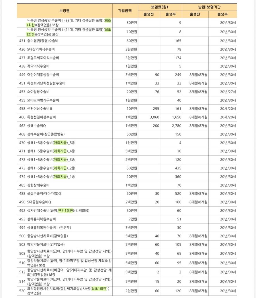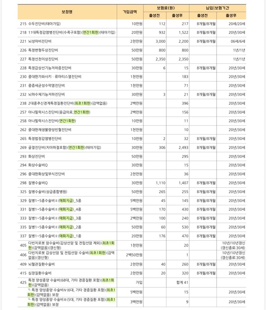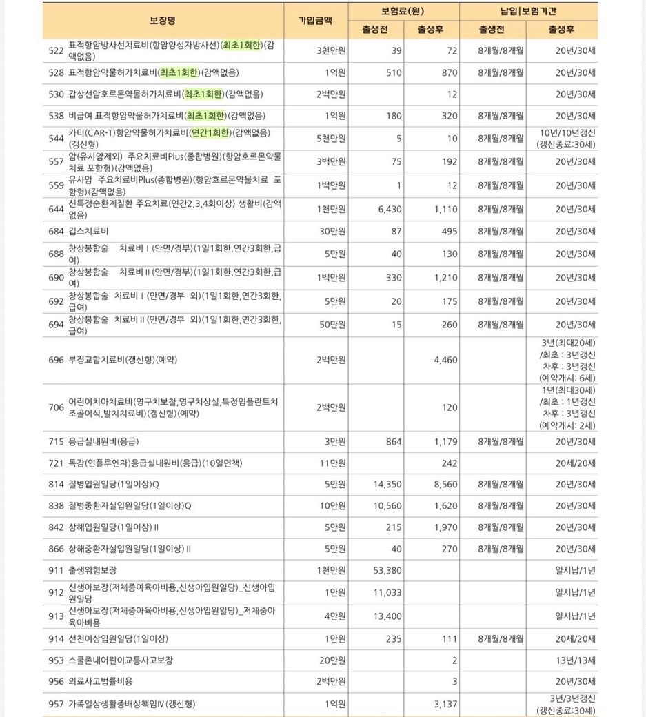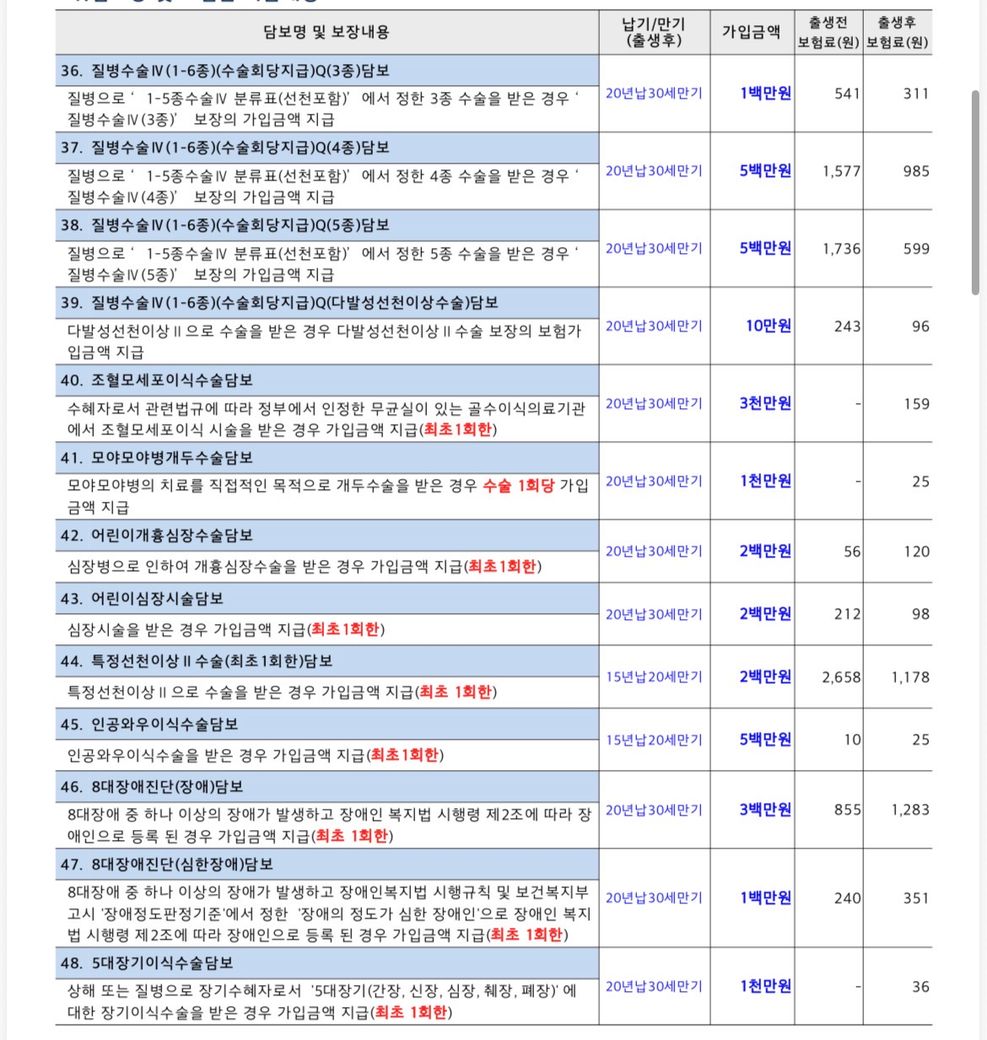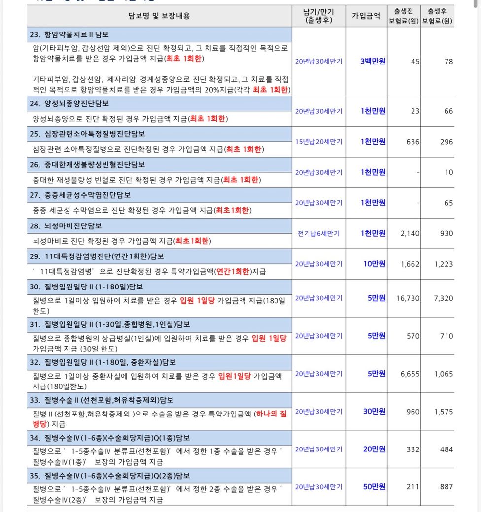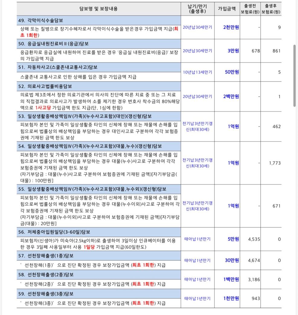 태아 기형아 검사 등 기본검사외 추가검사 등으로 건강하시다면, 굳이 많은 담보로 부담되는 보험료 납부하는게 맞나 싶습니다.
