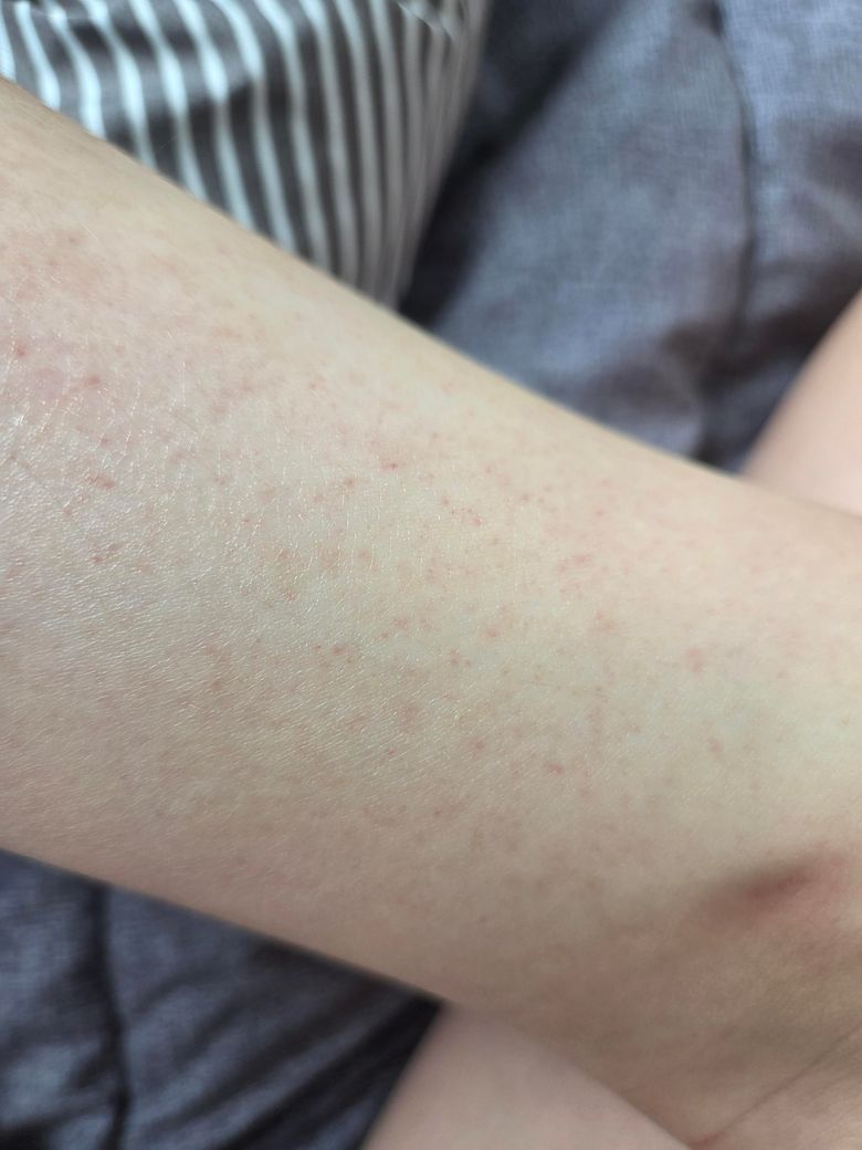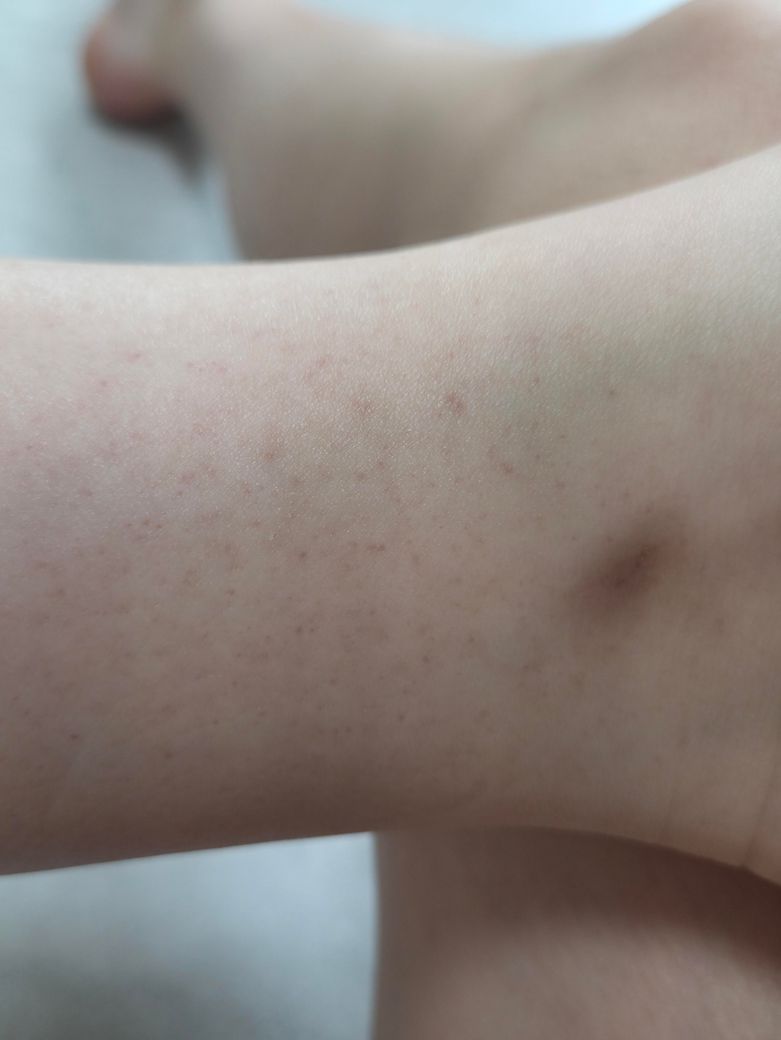 다리부터 무릎쪽까지에 붉고 적은 점들이 있어요 팔이나 몸에는 없고요.