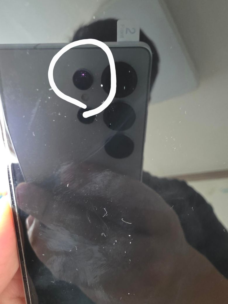 광학 코팅층(특히 메인 센서의 슈퍼 클리어 렌즈나 사파이어 코팅)이 특정 각도에서 빛을 반사할 때 저렇게 보라색이나 파란색 점처럼 보여요.