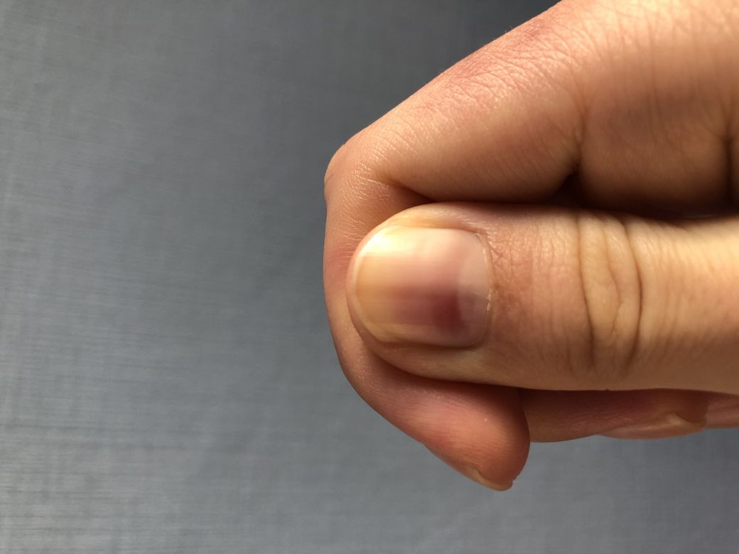 제 손톱인데 양쪽다 어느 순간부터 밑 쪽에 피가 고여 있는 것을 봤는데 왜 이런가요? 아무 의미 없는 건가요? 아니면 어디 이상이 있어서 그런 건가요? 사진상으로 좀 어려운데 왼쪽 밑에 쪽이요, 궁금하네요
