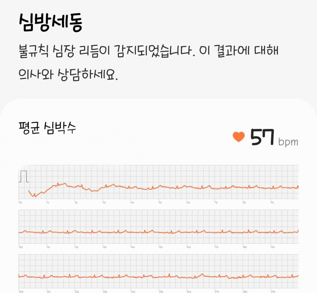 갤럭시 워치는 정확히 모르겠지만, p wave가 명확히 보이기 때문에 심방세동은 아니네요