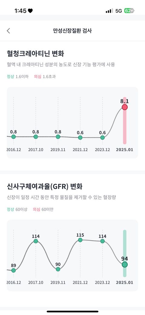 혈청크레아틴 수치가 작년까지도 정상이다가 갑자기 이런 수치가 나올 수 있나요? ㅠㅠ