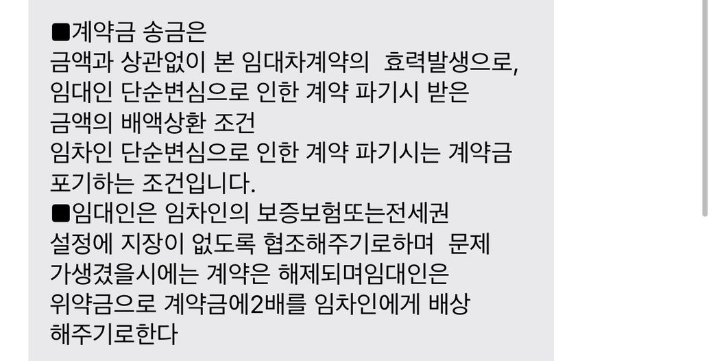 가계약 문자에는 단순변심은 계약금 포기 라고 나와있는데