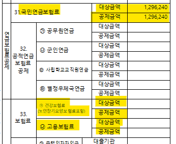원천징수영수증 상 건강,고용보험 문의