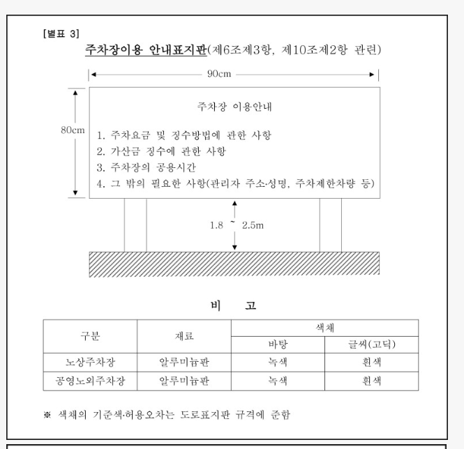 공영주차장 표지판의 표지 규정에대해서 바닥부터 표지판 하단까지가 어떻게 되는건가요~~?