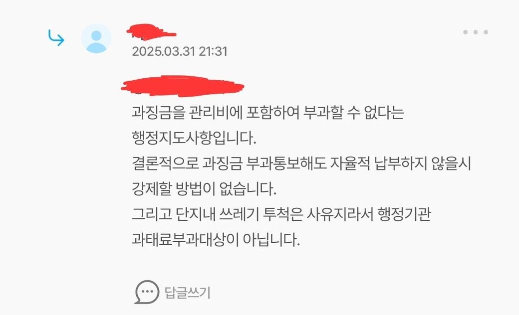 권고사항일 뿐이라면 관리비에 과징금을 포함시켜도 상관 없는것인지요?