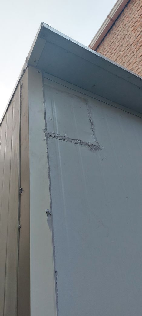 창고의 지붕부분을 새롭게 해주기로 약속했지만, 비싸서 못하겠다는 상식밖의 말을 하면서 이런 만행을 저지른 건축주를