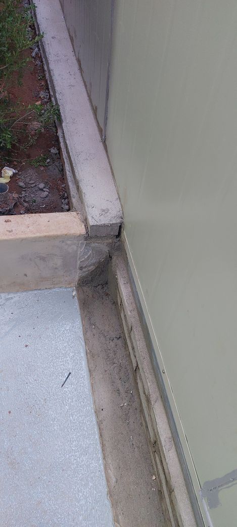 경계측량후 알게된 사실로 일부분이 건축주땅으로 넘어간 부분을 잘라낸후 마감처리 하겠다고 했습니다.