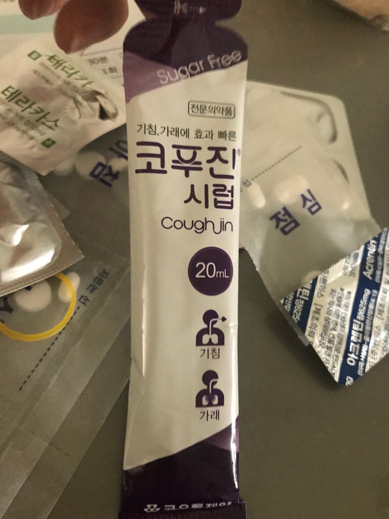 며칠전에 병원에서 받아온 약인데 기침이 심하다고 했었어서 가래약 빼고 기침약만 넣어서 다시 받아왔는데 지금은 기침 가래 다 너무 심해서