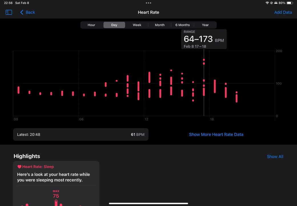 제가 가만히 앉아 있었는데 어떨 때는 심장 박동이 173까지 올라가고 또 어떨 때는 43까지 내려가는데 이러면 병원 가서 검사 좀 받아봐야 할까요? 지금도 가만히 앉아있는데 심박수가 123까지 올랐습니다