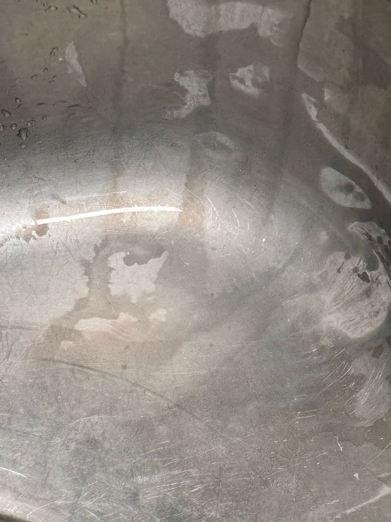 사진 상태를 보면 표면 오염이 아니라 스테인리스 산화, 광택층 손상이 이미 일어난 상태로 보입니다.