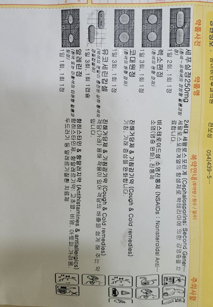 목이 아프고 가래 기침이 심해 접종 전날 아래와 같이 약을 처방받아 먹고있는 중 화이자 2차 접종을 맞았습니다.