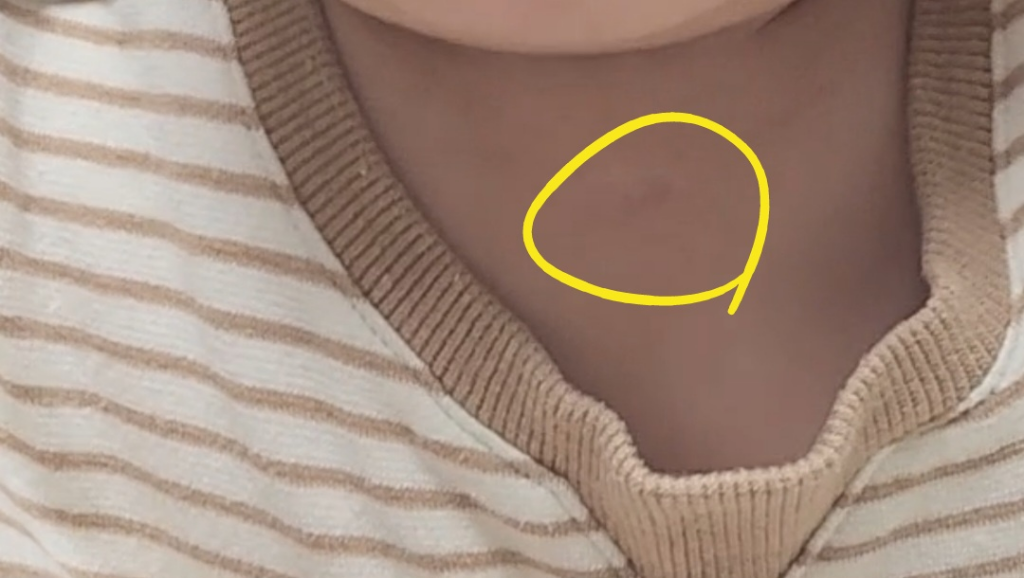 쇄골아래에 보조개처럼 지금보다 더어릴때부터 있었어요