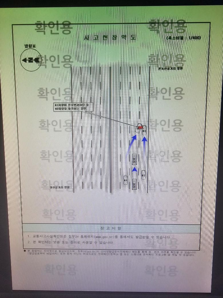 이사진의 옆에 3차선에는 버스가있었으며 버스는 2차선으로 차선변경중이었으며 제시야에는 이때쯤 보였습니다.