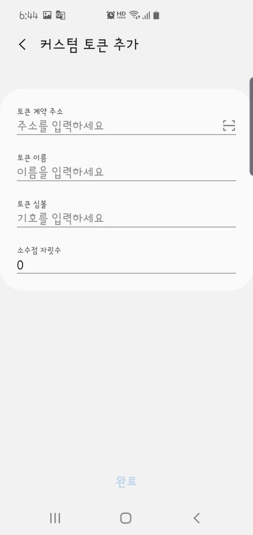 예를들어 아하토큰을 커스텀토큰에 추가시킨다고 하면 아래 그림과 같이 아하의 스마트컨트렉트 주소를 토큰계약주소란에 입력해주시면 나머지 항목은 자동으로 입력이 될 것입니다. ^^
