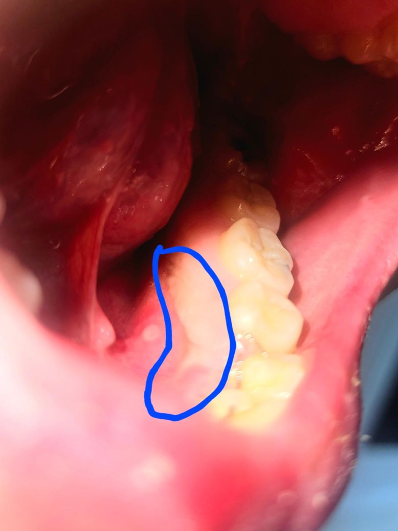 구내염이 심하게 생긴거 같습니다. 치과에 가셔서 저부위 소독을 받으시고 약을 바르시는게 좋을것같습니다.