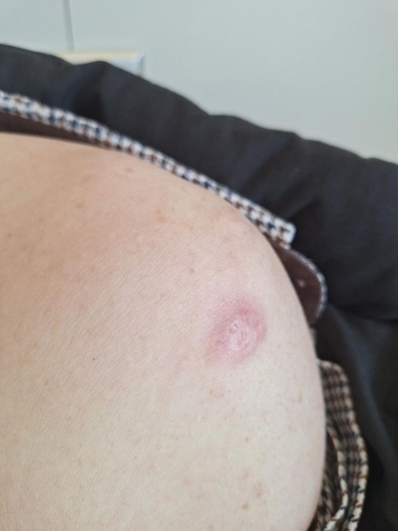 갑자기 생겼고 통증 거의 없으며 약한 가려움만 있는 점에서 가장 흔합니다. 중앙이 약간 단단하고 주변이 붉게 부을 수 있습니다.