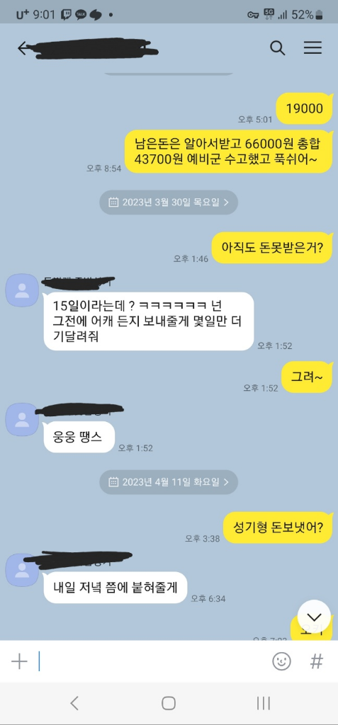 안녕하세요. 멋진 손자 이쁜손녀 할머니임~입니다. 주기로 해놓고 카톡 자체도 확인을 안하는것은 안주겠다는 모양같네요~?금액이 얼마인지는 모르겠지만 그냥 포기하세요 ?그돈때문에 스트레스받지말구요~