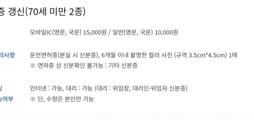 2종 운전면허의 경우는 사진1매와 발급수수료만 있으면 됩니다.