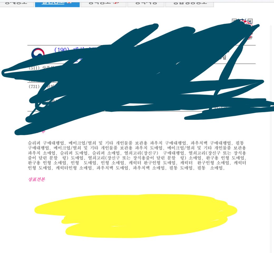 특정 동물 이미지 저작권을 찾아보다가 현재 페이지에서 의문은,, 이 사람이 가지고 있는 저작권?특허?는 노란색 부분 이미지인건가요? 다를 수도 있나요? / 상표견본 이미지 제대로 보려면 어떻게 해야하나요?