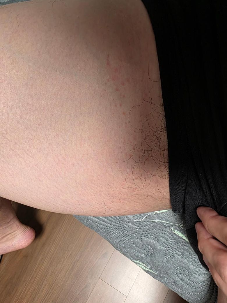 방금 샤워하려고 보니까 허벅지와 엉덩이에 속옷입은 쪽에만 이런것들이 나있고 살짝 가려운데, 땀띠 증상일까요? 다른 병일 가능성도 있나요?? 아침까지는 없었습니다. 너무 직접적인 사진 죄송합니다. 답변 부탁드리면너무 감사할 것 같습니다