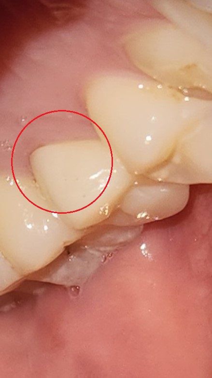 현재 사진상 틈새는 크게 영향을 미칠정도는 아니기에 걱정하지 않아도 됩니다. 음식물 찌꺼기가 남지 않도록 평소에 양치를 꼼꼼히 하여 관리하여 주길 권합니다.