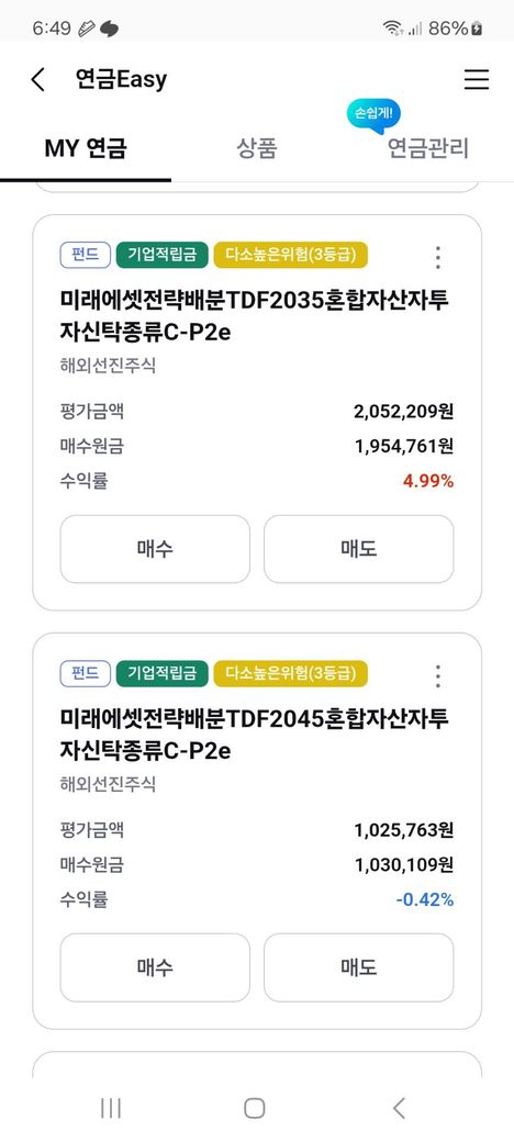 TDF2035랑 TDF2045 혼합운용중인데요..