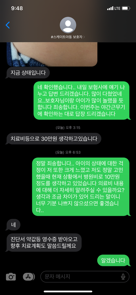 당시 아이는 주행범위인 중앙에 지인으로 보이는 아이들 총 셋이 일렬로 서있었는데 맨 좌측 즉 빙상장 중앙쪽으로 몸을 피하다 팔을 치고 지나가버렸는데 저는 중심을 잃고 앞으로 넘어지고 아이는 중심잃고 엉덩방아를 찧었습니다. 그 후 저는 아이의 상태를 살피며 괜찮은지 살폈고 안전요원과 아이가 다치진 않고 놀란 상태인 것을 인지 후 30분 정도 자리를 지키다 자리를 떴습니다 그런데 이후 일주일 뒤 아이가 허벅지와 엉덩이 사이쯤? 긁힌 상처가 났고 피가 났다며 피해보상을 요구하는데 제가 일상생활책임 보험이 없어 아이 보호자가 치료비와 진단서 비용등 30만원을 달라하는데 저도 양 무릎에 멍이 들었지만 아이임을 감안하고 어른으로써 책임을 지려고 하는데 너무 과도하게 부르는 거 같은데 어떡해야 할 지 잘 몰라 이렇게 글을 적습니다 조언 주시면 감사하겠습니다