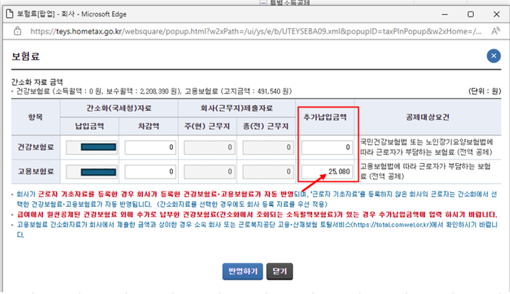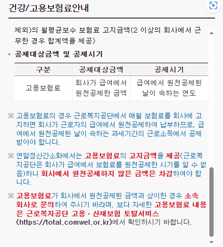 그런데 조회되는 고용보험 금액과 회사에서 실제 공제한 금액에 차이가 있습니다.
