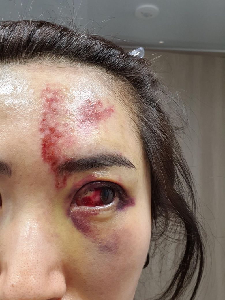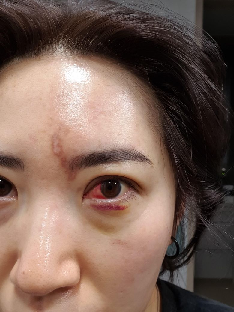눈신경을 막았다고 오른쪽 눈 이마쪽이 피부괴사가 시작되었는지 치료후 피부가 다 까이고 난리가나서 제가 지방에살고있으니