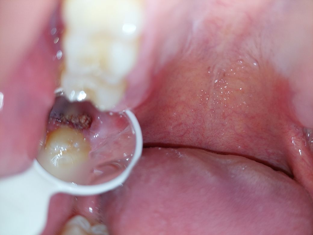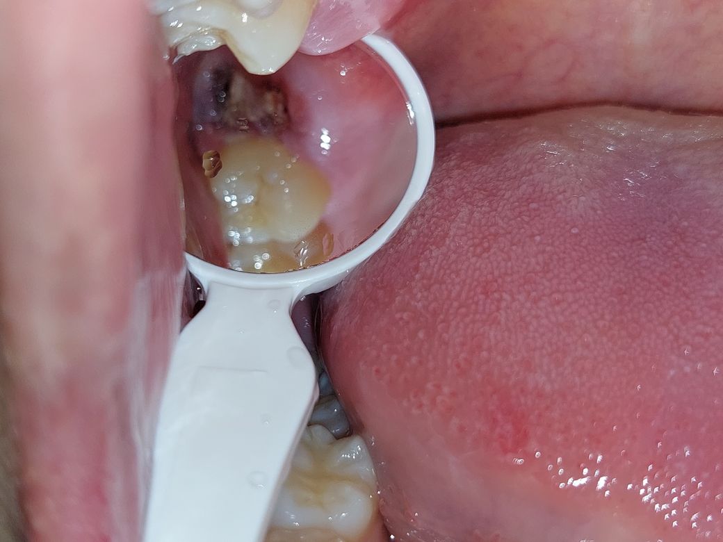(사진 주의) 사랑니 발치 자리에 하얀 것이 보이는데, 사랑니 뿌리일까요?