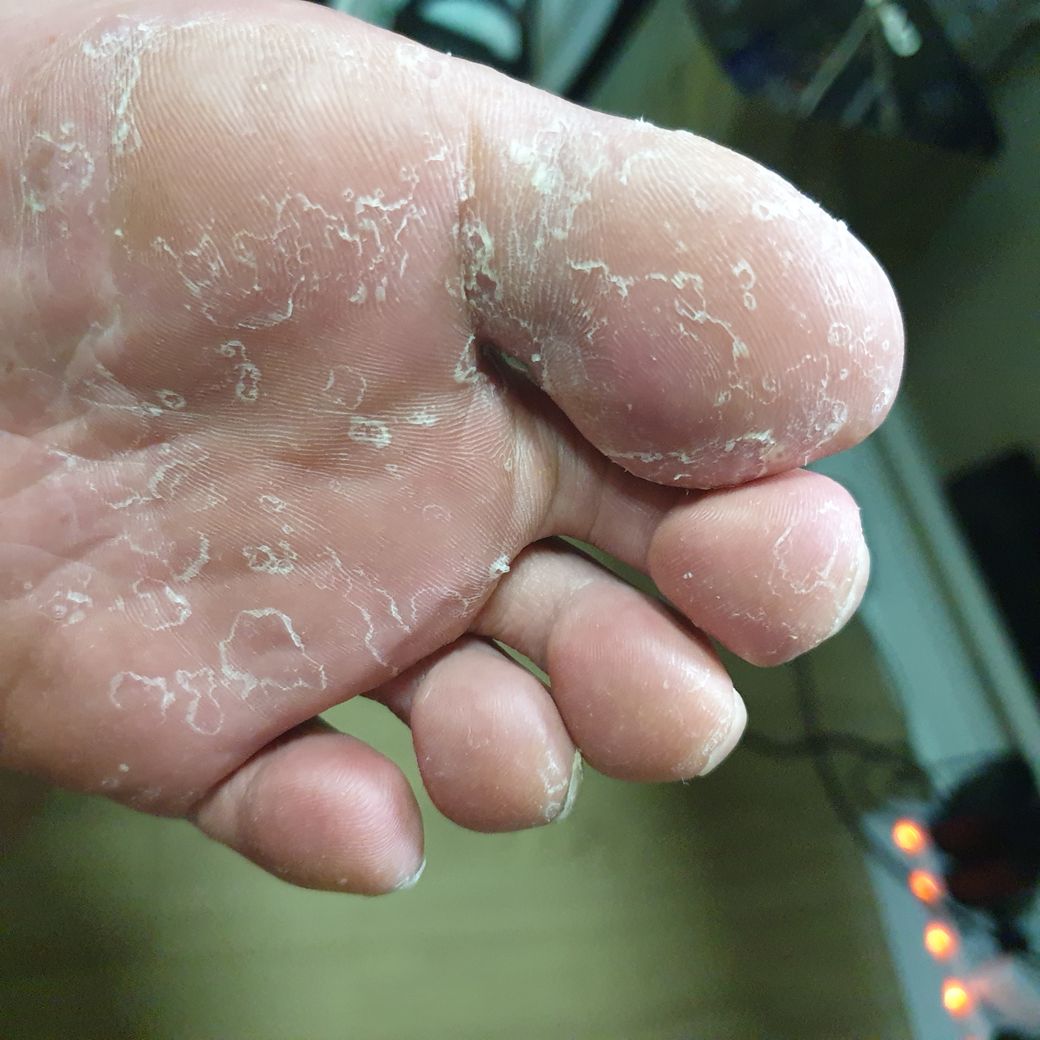 무좀약을 우선 적용해 보신 후 효과가 나타나지 않는다면 피부과 방문을 권장합니다.