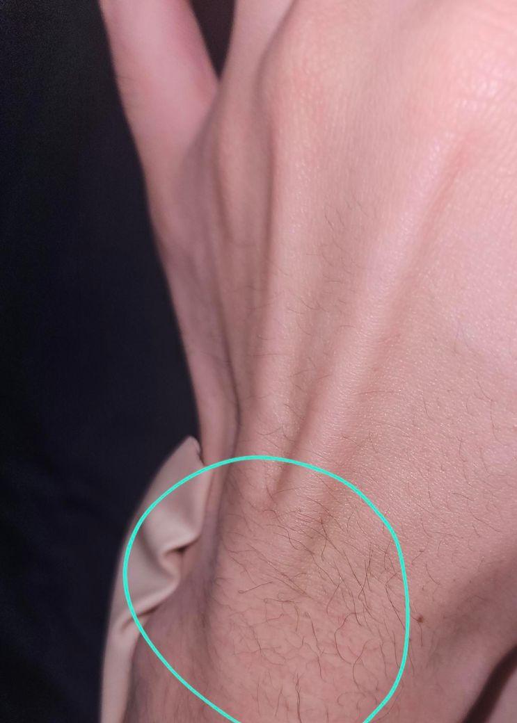 다만 손바닥이나 정중신경이 지나는 손목 아랫부분에는 아무 증상도 없습니다. 오로지 손등과 팔등에만 국한되어있습니다.