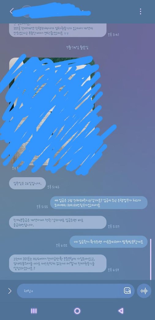 서류모아서 임차권등기 설정하고 이제 두달정도지나서 허그 신청할려고하는데 집주인한테 문자가 오네요