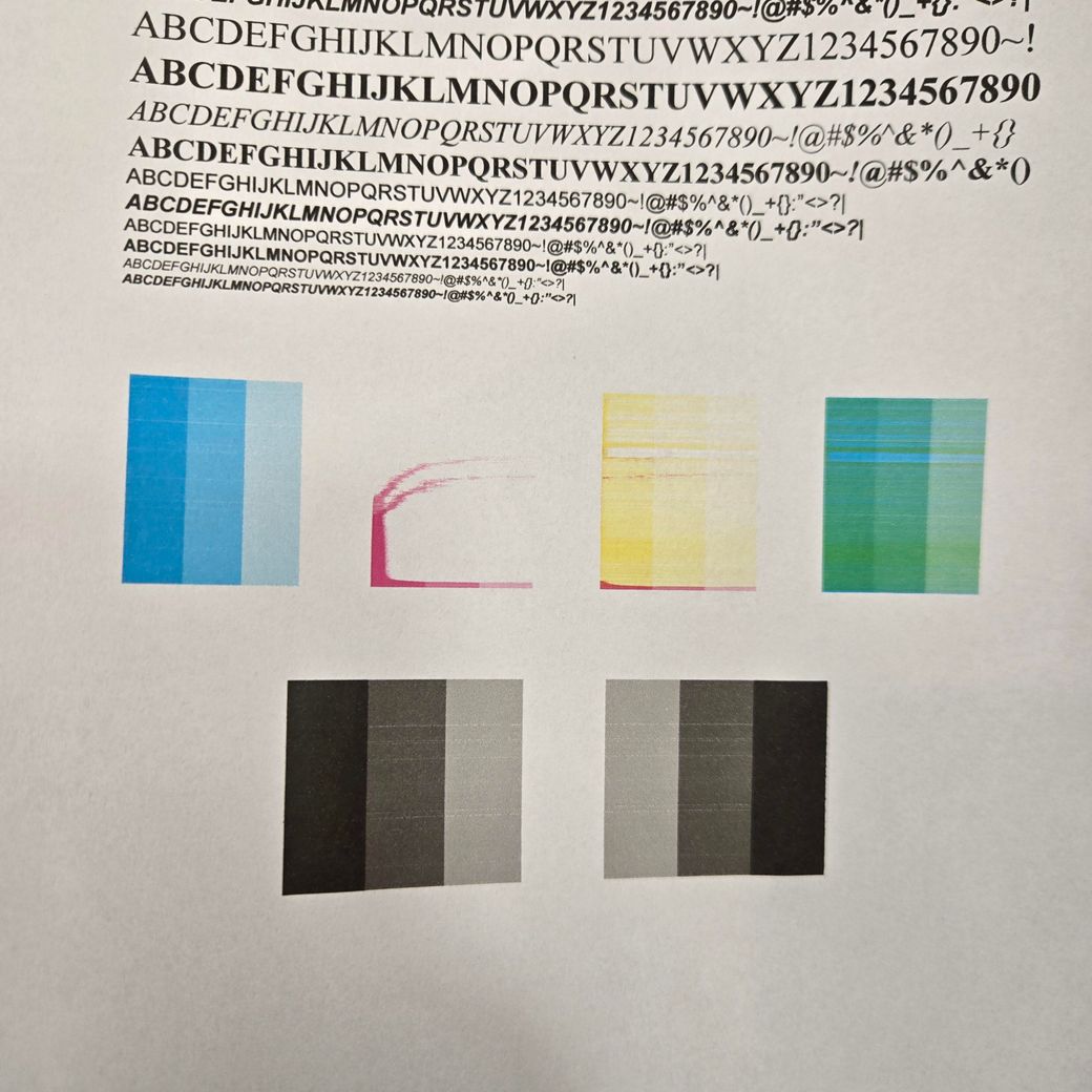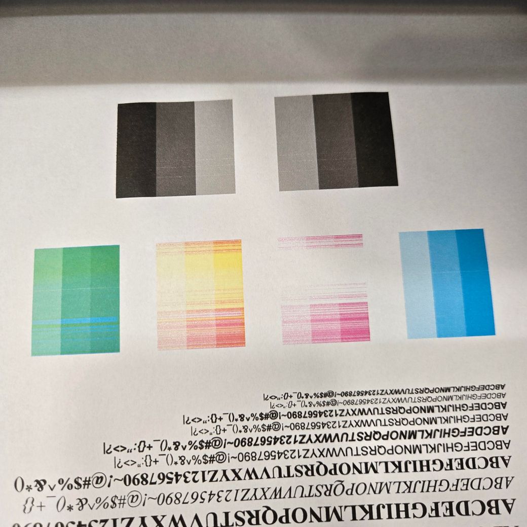 카트리지?는 다 채워져있는데 이 두가지 색깔만 이상하게 나오ㅓ요 프린트 정렬도 했고ㅠㅠ