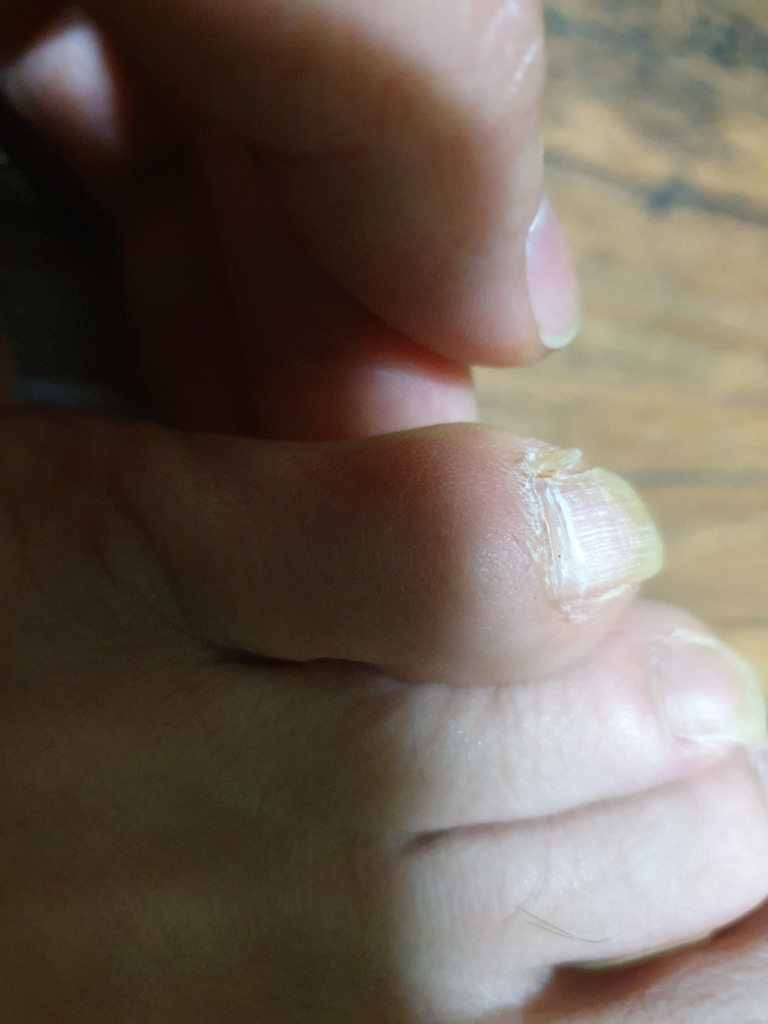 갈라진 부위로 인하여 발톱에 더 손상이 가지 않도록 유의하며 관리하시면 발톱이 계속 자라나와 회복됩니다.