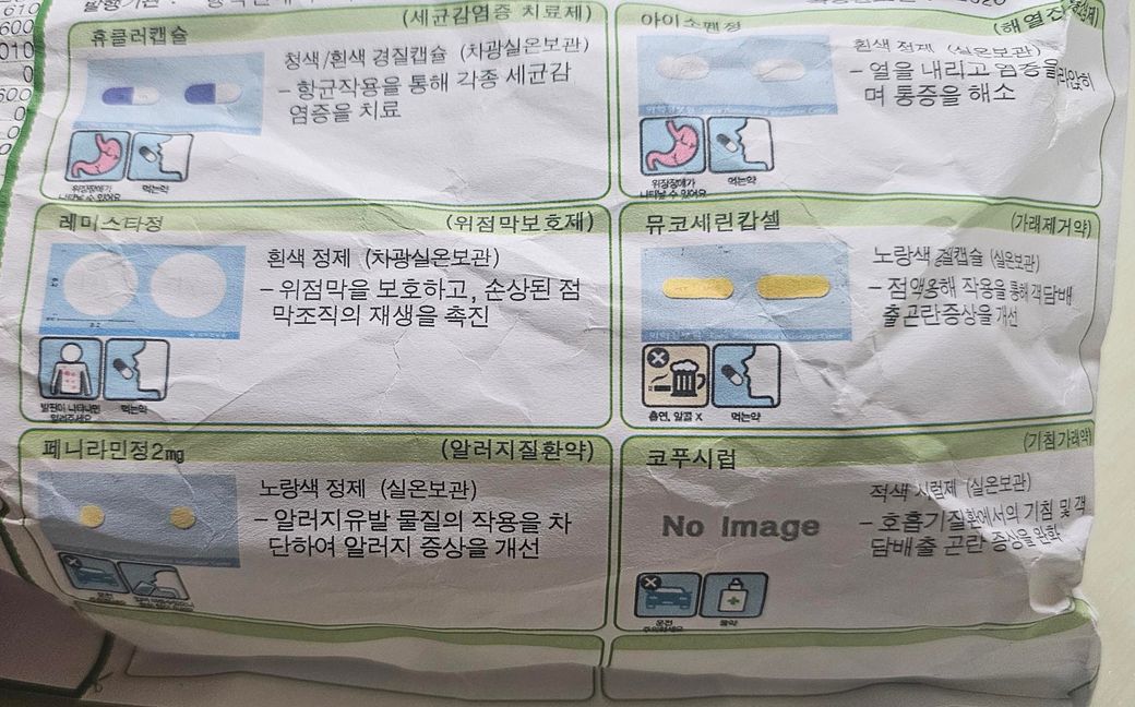 사진에 나와있는 약 부작용일까요.제가 감기 걸릴때마다 병원에서 처방받던 익숙한 약입니다.근데 어제 갑자기 부작용이 일어났었습니다.