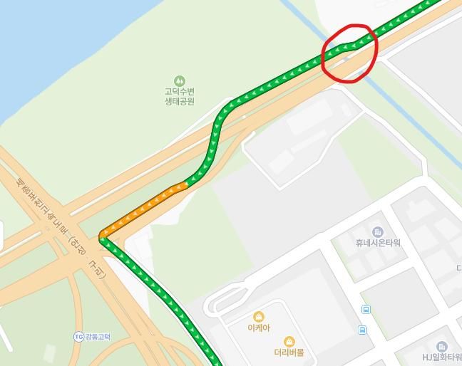 길찾기에서는 올림픽대로 타다가 빨간 동그라미 지점에서 우측도로로 빠져서 시내로 가는길로 안내하는데요