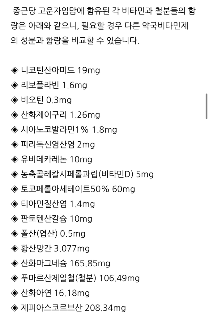 고운자임맘 자체가 종합비타민이기때문에 종합비타민은 제외하시길 바랍니다.