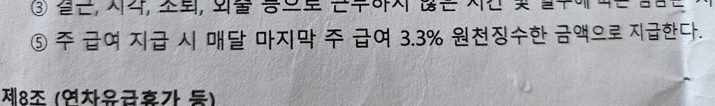 계약서상에 매달 마지막주 급여3.3%로 공제내용이 있어요.