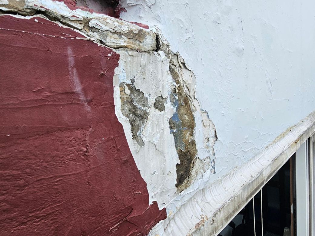 관리실은 윗층 코킹불량으로 인해서 외벽 누수되었다고합니다 서로 책임공방 하는 데