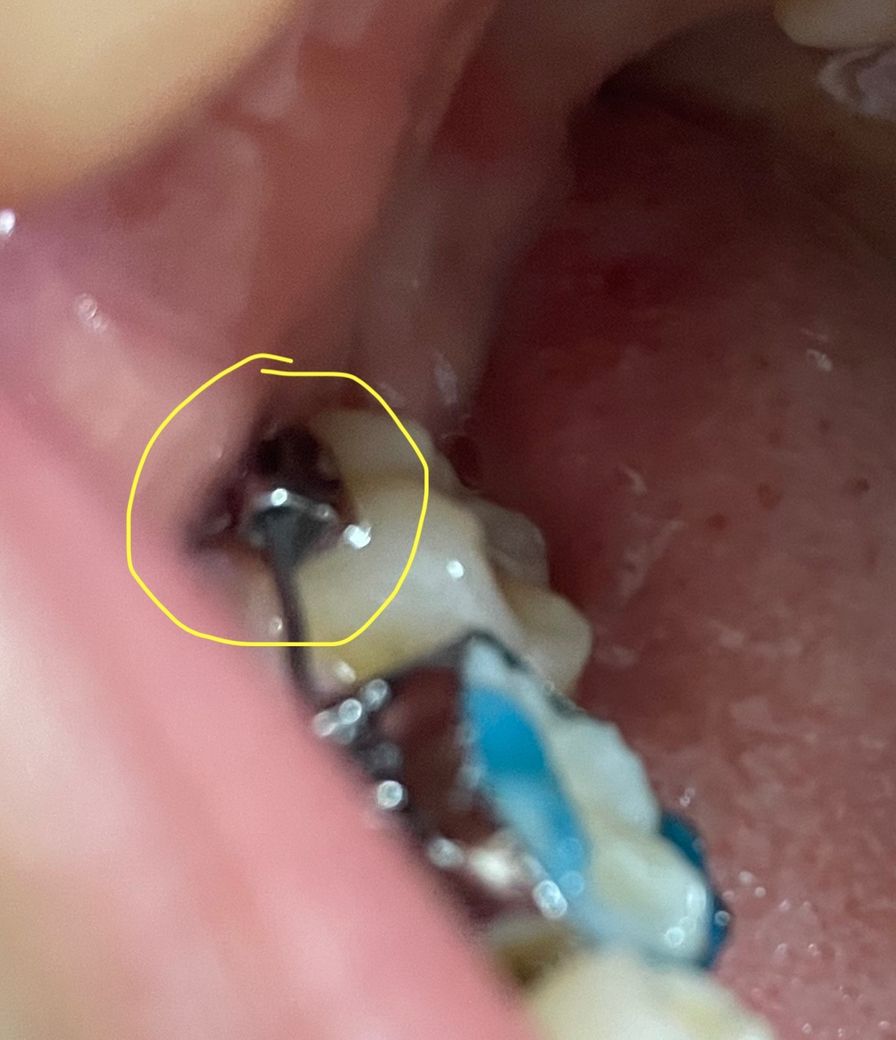 근데 보니 어금니에 부착된 쇠 브라켓이 떼졌더라구요.. 삼킨 것 같은데 ㅠ 괜찮을까요..?