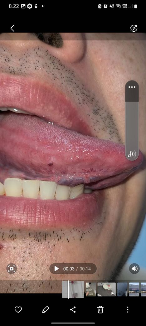 연조직에 강한 힘을 받게 되면 일시적으로 조직 내부에 출혈이 생길 수 있습니다. 크게 문제가 되는 것은 아니며 시간이 지나면서 해당 증상은 없어질 가능성이 높습니다. 혀에 많은 자극이 가해지지 않도록 해주는 것이 좋습니다