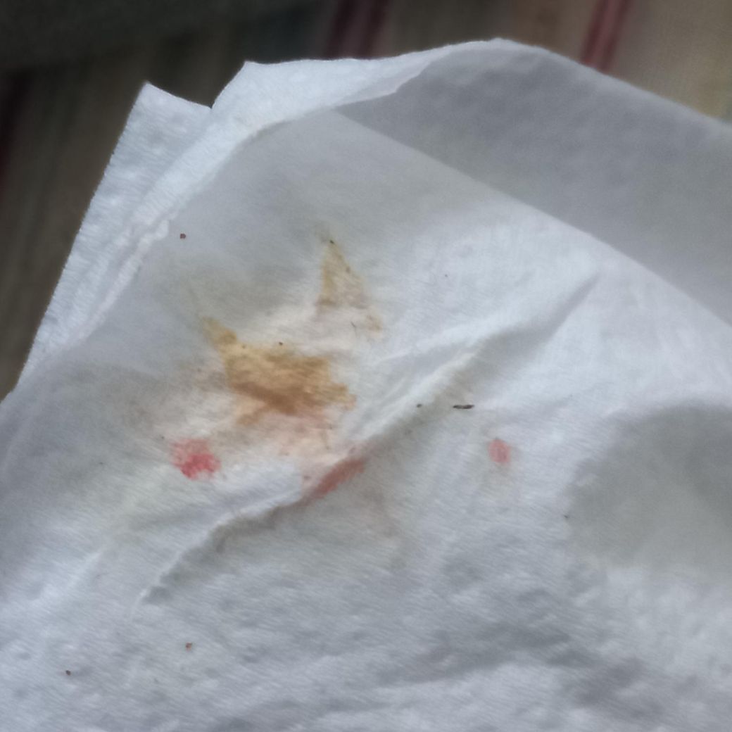 그래도 소화는 잘되고 배고픈 느낌도 들고 일상생활 하는데는 지장이 없습니다. 그런데 특이사항이 똥 닦을때 초반에는 대변색이 묻어 나오지만 거의 마지막으로 닦을때는 이런식으로 살짝 피가 섞여 나옵니다.