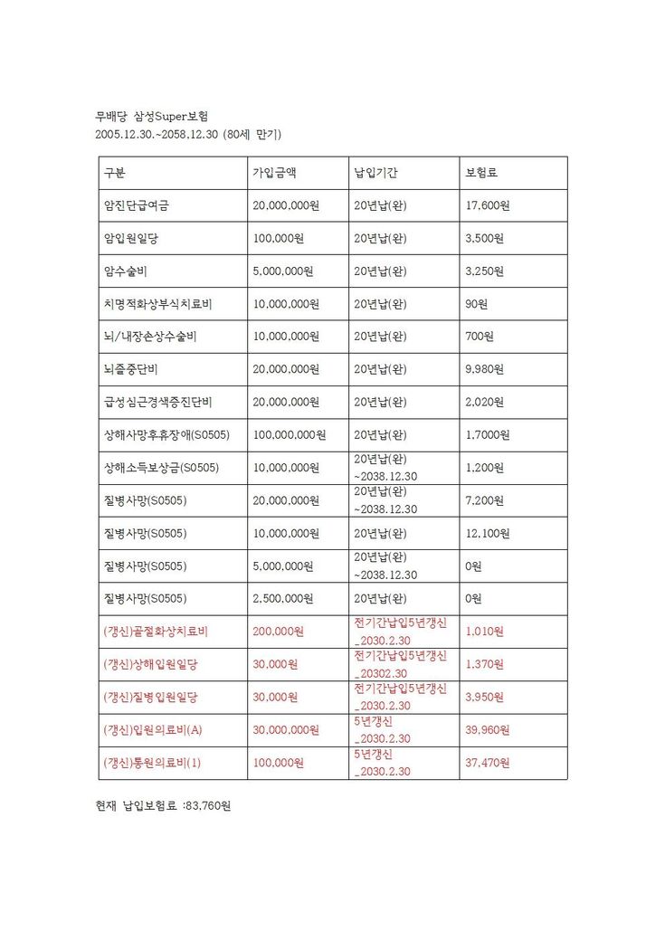 갱신형 다 합하니 지금 계산만 해도 83,760원입니다.
